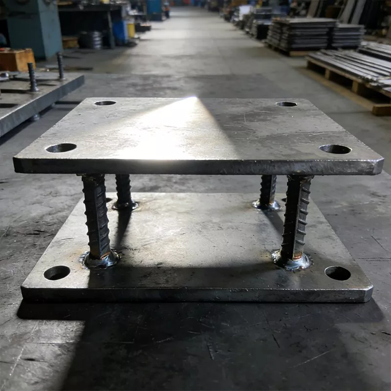 Вградените анкерни плочи, като ключови съединители на ядрото, предварително вградени в бетонни конструкции, използват високоякостни стоманени плочи Q235B и Q345B като твърд основен материал. Те преминават щателно CNC рязане, прецизно пробиване и цялостна антикорозионна обработка, което позволява перфектно заваряване с резбови стоманени анкерни пръти, за да се образува стабилна и надеждна пълна котва. Те могат ефективно да поемат натоварванията от външни компоненти като фотоволтаични инсталационни системи, стоманени конструкции и тежкотоварно оборудване, като постигат равномерно предаване на силата и стабилна връзка, като по този начин гарантират безопасността на строителните конструкции.