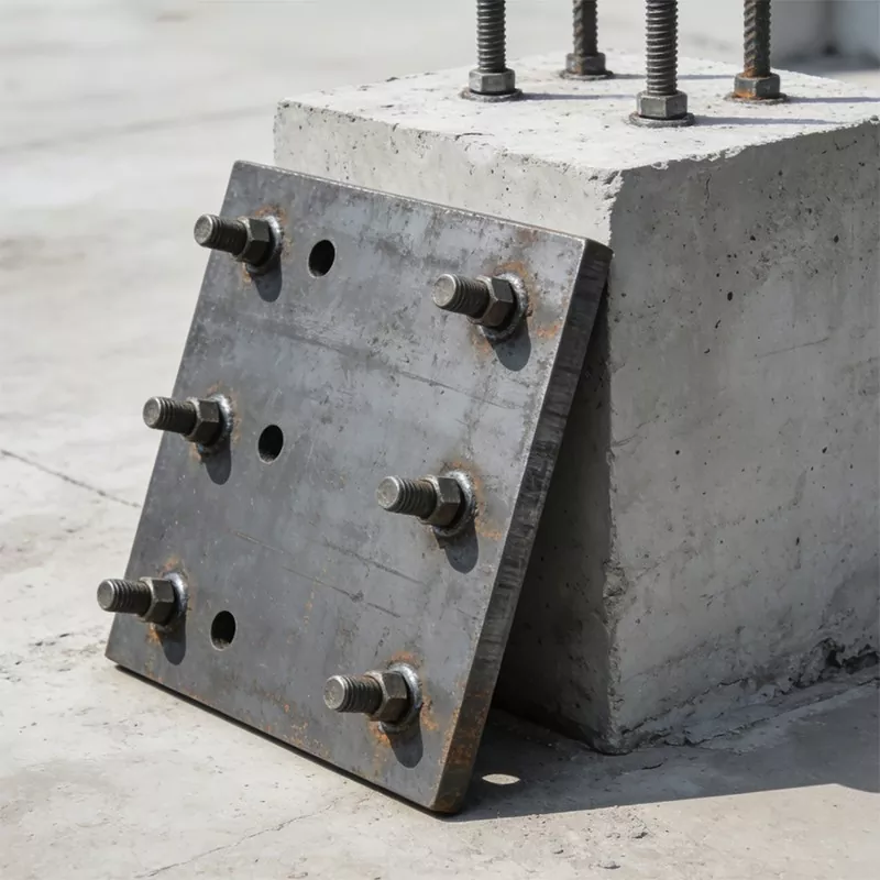 Основната функция на вградената стоманена плоча се фокусира върху позициониране на три ядра, което е ключовият носител за свързване на основното тяло на сградата и спомагателната конструкция: като център за предаване на натоварване, той може да поеме собственото тегло, натоварването от вятър и вибрационното натоварване на спомагателните компоненти, като окачена стена и стъклена преграда, и равномерно да предава разпределеното натоварване към основната бетонна конструкция, за да избегне структурни повреди, причинени от локална концентрация на напрежение; Тъй като референтното позициониране на инсталацията, разчитайки на точното позициониране в етапа на предварително вграждане, то осигурява фиксирана референция за инсталирането на последващи опори и компоненти, гарантира, че спомагателните структури са подредени редовно и точността на монтажа достига стандарта и значително намалява вторичната обработка и процедурите за настройка на място; като гаранция за структурна стабилност, той образува солидна интегрирана структура с изливане на бетон, ефективно подобрява стабилността на връзката между външните компоненти и основната конструкция, подобрява цялостните способности за защита срещу преобръщане и защита от вибрации на сградата и удължава експлоатационния живот на спомагателните конструкции на сградата.