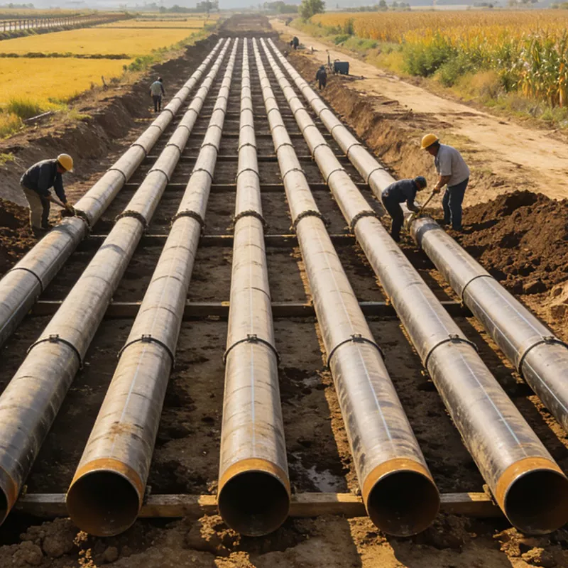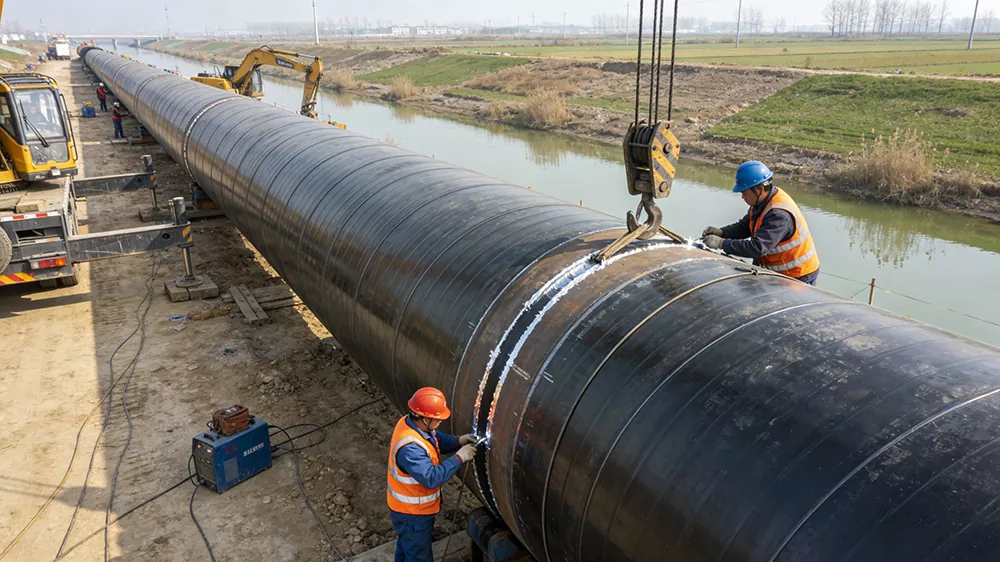 Приложими сценарии: Мащабни проекти за отклоняване на вода, проекти за пренос на вода, проекти за контрол на наводнения и дренаж, главни тръбопроводи за напояване на земеделски земи, проекти за водоснабдяване за питейна вода, проекти за водоснабдяване на острови и др. Основните изисквания са висок капацитет на потока, устойчивост на корозия и устойчивост на водно налягане. Те могат да бъдат адаптирани към сложни среди като речни корита, засегнати от сол земи и т.н. Те могат ефективно да устоят на водната ерозия и геоложкото потъване, осигурявайки стабилно предаване на водни ресурси и гарантирайки безопасното функциониране на проекти за опазване на водата. Те играят важна поддържаща роля в ключови национални проекти за опазване на водите. Описание на сцената: На строителната площадка на проекта за отклоняване на водата Jinghai спирални тръби с голям диаметър се използват за полагане на главния тръбопровод. Тръбите минават през реки или земеделски земи и работниците извършват обработка за запечатване на интерфейса. На мястото на проекта за водоснабдяване на острова се използват спирални тръби с голям диаметър с 3PE антикорозионна технология, за да се устои на ерозията на морската вода и да се постигне взаимовръзка на водните ресурси между острова и континента.