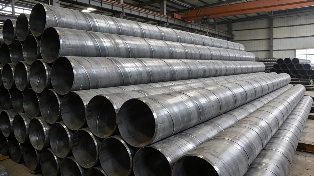 Спиралната тръба с голям диаметър (известна също като спирално заварена тръба с голям отвор) е вид стоманена тръба със спирален шев, изработена от висококачествени горещо валцувани стоманени листове като основна суровина. Той се формира чрез студена екструзия при стайна температура и след това се заварява с помощта на автоматичен процес на двустранно заваряване под флюс с двойна тел. Стандартът за дефиниция на сърцевината е външен диаметър ≥ 711 mm (съответстващ на номинален диаметър от DN700 и повече). Може да се персонализира с външен диаметър до 3620 mm или дори по-големи спецификации според инженерните изисквания. Това е композитен тип стоманен продукт, който съчетава носещи и транспортни способности. Неговата основна функция е да постига транспортиране на дълги разстояния с висока стабилност на големи обеми течности (като вода, нефт, газ, канализация и др.) и може също така да служи като структурен поддържащ компонент за мащабни проекти, като се адаптира към сложни работни условия и тежки среди. Със своя уникален дизайн на спирална структура, той запълва празнината в индустрията в ефективното производство и стабилното приложение на тръбни материали с голям диаметър и се използва широко в различни инфраструктурни и индустриални сценарии.