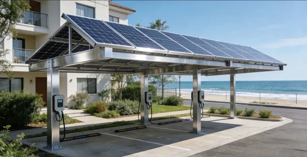 Възползвайки се от предимствата на цялата индустриална верига на стоманодобивната база в Тиендзин, Shunchen Industrial притежава собствени производствени линии за дълбока обработка на стомана и горещо поцинковане. Той избира квадратни тръби с висока якост Q235B/Q345B и профили от алуминиева сплав 6061-T6, допълнени от двоен антикорозионен процес с дебелина на цинковия слой ≥80 μm и дебелина на анодизиран филм ≥15 μm, гарантирайки, че структурата остава стабилна и издръжлива дори в тежки среди, с продължителност на живота над 25 години. Поддържат се услуги за персонализиране, позволяващи гъвкави настройки на размерите на паркомястото и ъглите на наклона на фотоволтаичните панели, съвместимост с различни основни модули и превъзходни показатели за безопасност. Модулният дизайн позволява бързо сглобяване, със седем клона в цялата страна, осигуряващи удобна доставка и проектиране, производство, монтаж и следпродажбено обслужване на едно гише, което спомага за създаването на нов интелигентен сценарий, интегриращ „паркиране + генериране на енергия + зареждане“.