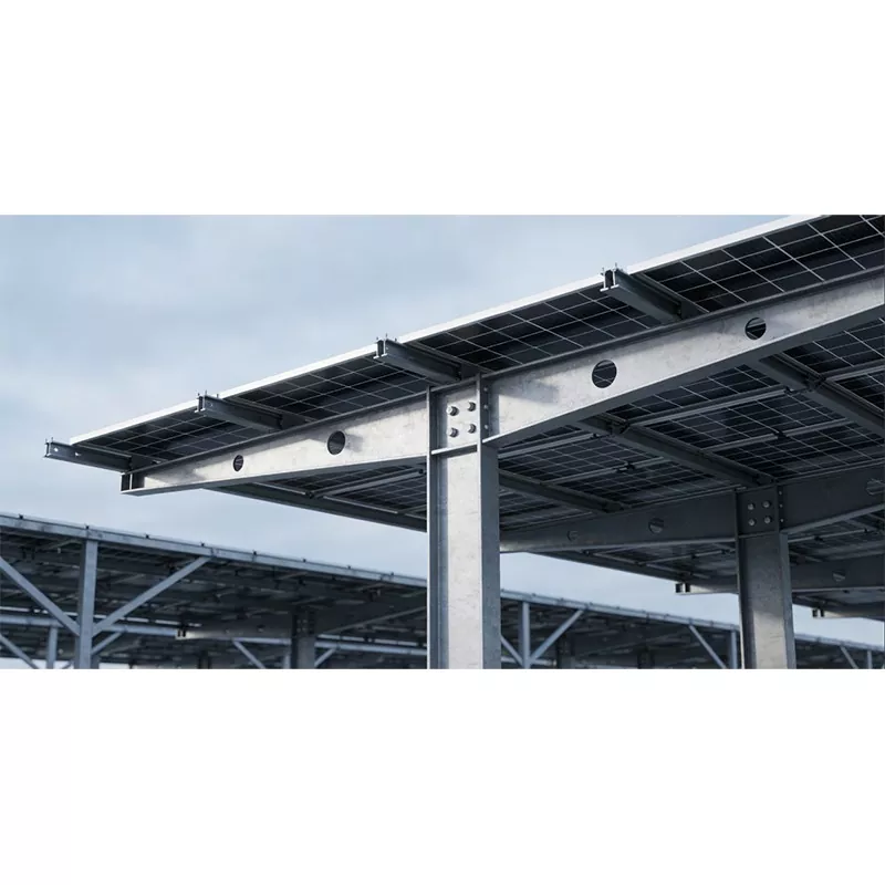 Слънчевата структура за навеси за автомобили на Shunchen Industrial може да се похвали с разнообразни функции и прецизно позициониране. Като основно средство за защита при паркиране, то ефективно издържа на излагане на слънце, дъжд и натиск от сняг, осигурявайки цялостна защита за боята и компонентите на автомобила и подобрявайки комфорта при паркиране. Едновременно с това, той служи като идеална платформа за фотоволтаични електроцентрали, осигурявайки стабилна основа за фотоволтаични модули, гарантирайки, че панелите получават слънчева енергия при оптимален ъгъл на наклон и равномерно разпределяйки натоварването към основата, гарантирайки структурна стабилност и безопасност. Освен това тази структура притежава мощни възможности за преобразуване и използване на енергия, преобразувайки слънчевата енергия в електричество за свързване към мрежата или местно потребление, като захранване на станции за зареждане, задоволяване на нуждите от електричество на парка, насърчаване на заместването на чиста енергия и намаляване на разходите за електроенергия. По-важното е, че поддържа адаптация към различни сценарии и може да се интегрира със станции за зареждане, интелигентно осветление, системи за наблюдение и т.н., за да се създаде интегрирано решение за интелигентно паркиране, комбиниращо „паркиране + генериране на енергия + зареждане“.